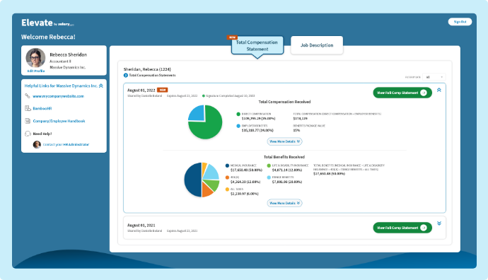 Elevate by Salary.com® makes it simple for HR to share, for managers to explain, and for employees to understand the full value of their pay — all in one secure place.